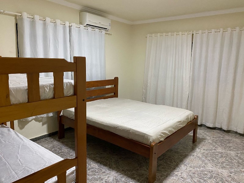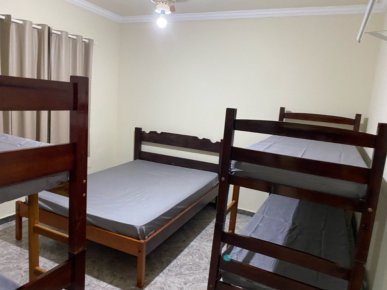Espaço ideal para grupos grandes: são 6 quartos (incluindo 1 suíte, 3 internos e 2 na casa externa), 5 banheiros ao todo e capacidade para acomodar até 25 pessoas com conforto.